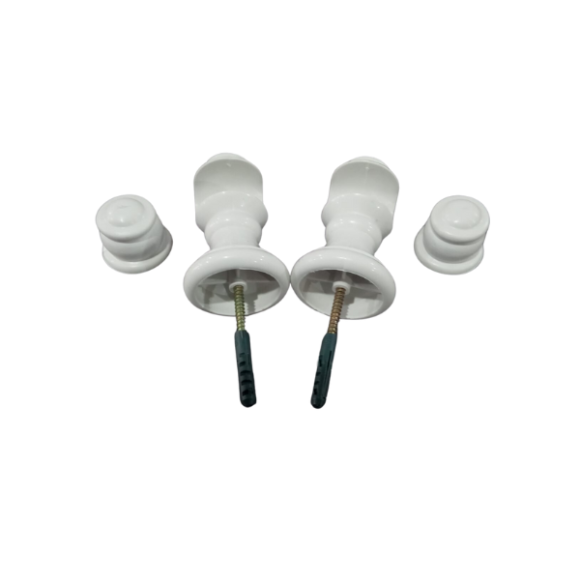 Jogo de suporte para varão de 28mm para parede, produzido em plástico ABS, injetado com parafuso para ser fixado na parede com bucha de 8 mm.