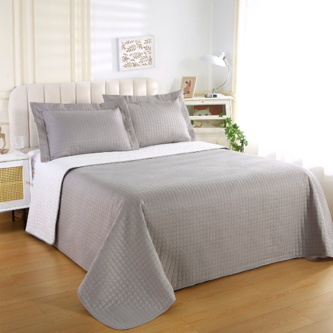 Combinação perfeita de beleza e conforto, a coleção duo grid possui um desenho personalizado, feito com um tecido macio que serve tanto para cobrir a cama, quanto para dormir. É dupla face, podendo ser utilizada tanto de um lado quanto do outro, sua cama sempre arrumada de um jeito diferente.