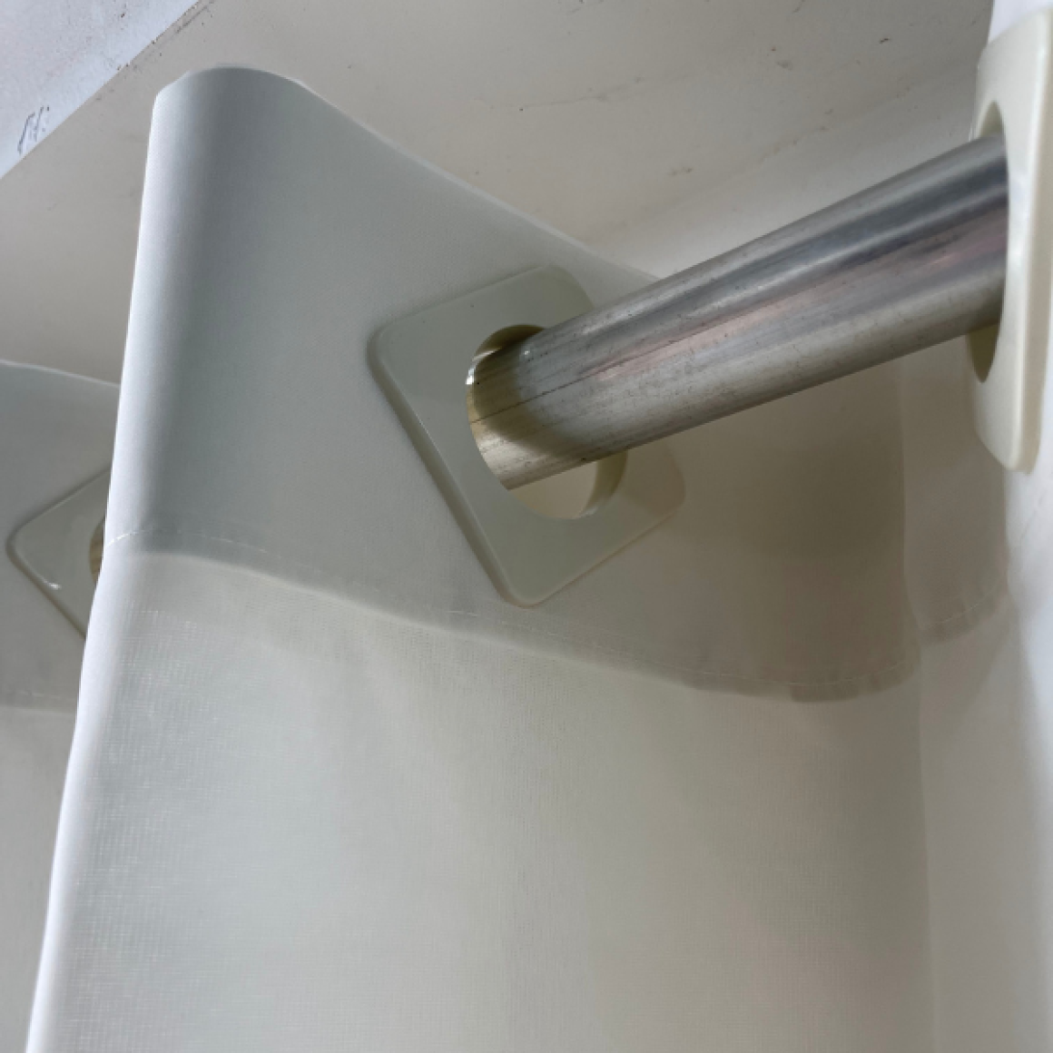 1 cortina de ilhós para passagem de varão simples com duas partes de 1,50 m de largura e 1,80m de altura.